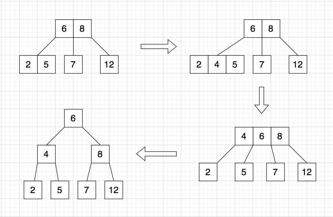 2-3 树任意节点的左右⼦树的⾼度差都为 0,所以是绝对平衡的多叉树,那么在添加新节点的过程中是如何维护这个性质的呢?