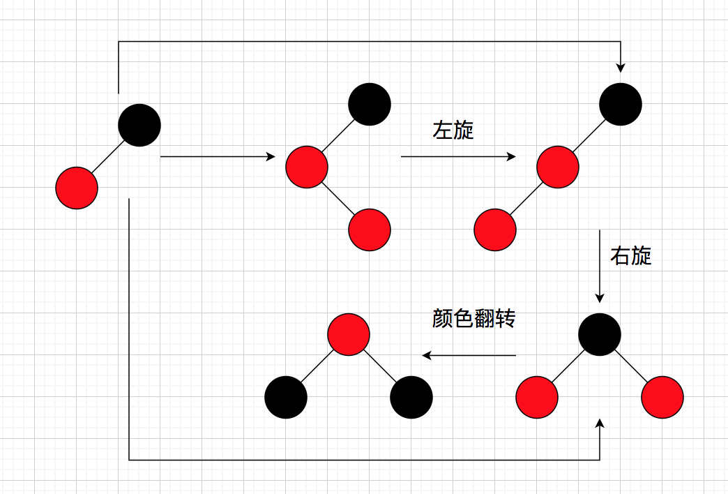 - 往 2-3 树的 2-节点添加⼤于 2-节点值的新元素。等价于往红⿊树的⿊节点的右⼦树添加新的红节点,再进⾏左旋,将新的红节点变成⿊节点。